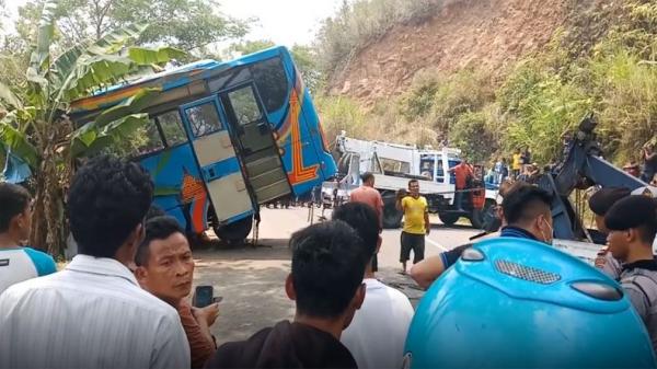 Upaya evakuasi bus ini cukup sulit karena jurang curam dan di bagian atasnya berbukit. Polisi kemudian mendatangkan alat berat dan mobil derek untuk menarik bangkai bus ke atas. Setelah beberapa jam, bangkai bus berwarna biru itu akhirnya berhasil ditarik ke atas.