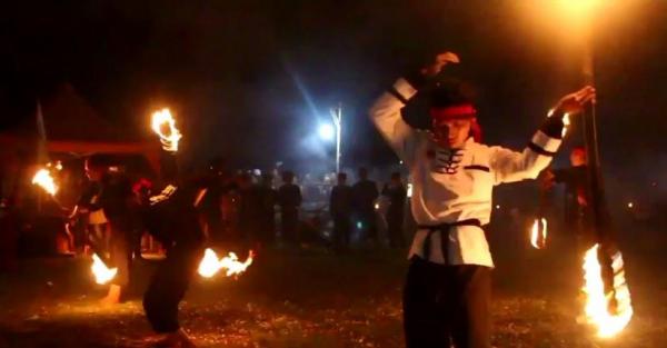 Atraksi api. (Foto: iNews/Toiskandar)