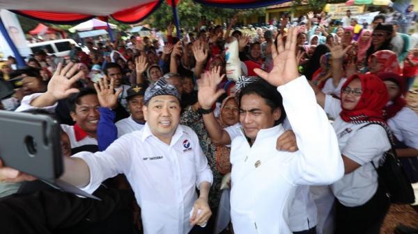 SUBANG, iNews.id – Kehadiran Ketua Umum Partai Perindo Hary Tanoesoedibjo (HT) menghebohkan ribuan warga yang memadati Lapangan Desa Jabong, Kabupaten Subang, Jawa Barat (Jabar), Senin (8/4/2019). Saat nge-vlog bareng bersama HT, warga dengan semangat menyerukan kesiapan mereka memenangkan partai bernomor 9 ini.