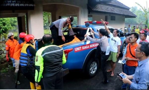 Petugas BPBD, Tagana, serta Polsek Ciamis yang datang ke lokasi kejadian langsung mengevakuasi mayat dengan posisi telungkup dari bebatuan yang berada di tengah Sungai Cileueur.