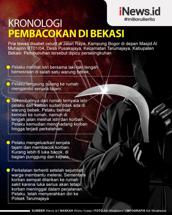 BEKASI, iNews.id – Seorang warga Kabupaten Bekasi, Jawa Barat (Jabar), nekat membunuh selingkuhan istrinya di Jalan Raya, Kampung Bogor depan Masjid Al Muhajirin RT01/04, Desa Pusakajaya, Kecamatan Tarumajaya. Pelaku menebas korban yang juga temannya dengan celurit setelah memergokinya berduaan dengan istrinya.