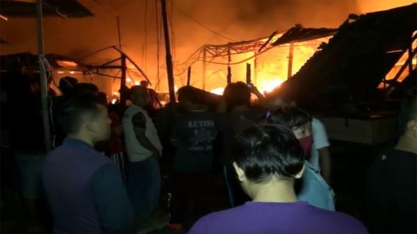 Kebakaran yang terjadi pukul 23.30 WIB itu, membuat panik warga di sekitar pasar karena khawatir api merembet ke permukiman warga.