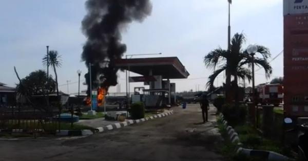 Peristiwa itu terjadi diduga akibat ulah sopir minibus yang nekat merokok di kawasan SPBU. Ironisnya, sopir Kijang tersebut melarikan diri.