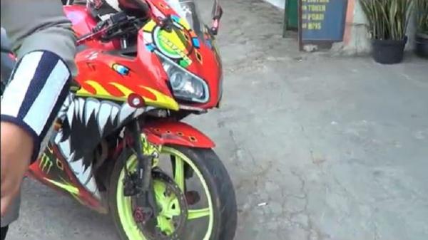 Deokanit Turjawali Polres Cimahi, Iptu Haga mengatakan, kesalahan pengendara ini karena menutupi cat asli kendaraan dengan stiker full di bagian body motor.