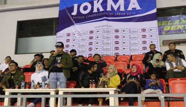 SUMEDANG, iNews.id - Ratusan warga menyaksikan penutupan Open Tournament Futsal Competition se-Jawa Barat yang digelar Jokowi-Ma'ruf (Jokma) Jabar di GOR Jatinangor, Sumedang, Jawa Barat, Kamis (21/2/2019).