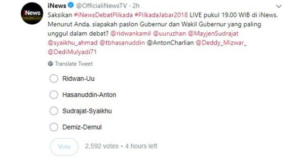 Unggulkan Siapa di Debat Pilgub Jabar? Pilih di Polling Twitter iNews